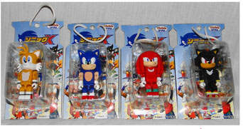 Cubic figures. These are sort of like those Lego-men things, but with a Sonic theme. There's even Shadow the hedgehog on this set. It was released at the time of Sonic X. The loop at the top suggests UFO catcher, but it isn't known where they were available. Once, there was an import store link near the top left of this page that may still have these in stock.