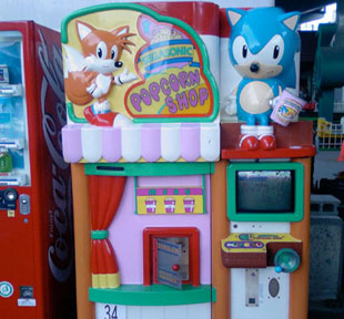 Further Facts: It is one of 3 Sonic Arcade-type games released only in Japan. This is the only one that dispenses food. It does not matter if you win or lose the mini-game, you always get the pop corn. If you don't win the game, Tails is sad. Info provided by MetalMandible. There USED to be a Youtube video of this item in action, but it has since dissappeared. In it, you could watch the game and see a demo. If you want to read more about it, SegaNerds posted an article, complete with a quote from someone who got to play it at a zoo. Be sure to Read The Sega Nerds Article.