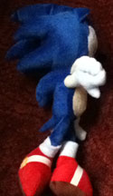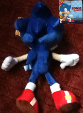 The Sonic at left was won from this machine, & you can see the classic style checkered tag. However, his ear color is a sticker, so the card-tag puts a big hole in it. He is about 12 in. tall.