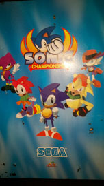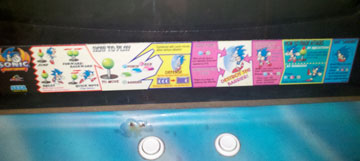 Here, a fan has managed to do the nearly impossible! To collect something that's among the rarest of the rare! An entire Sonic the Fighters / Champions Arcade Cabinet! Notice that it isn't in an arcade somewhere, it's in a room as it's been collected. The top has the logo (Sonic with fist in a flame) and the very faceted polygonal art of everyone in the game. The theme of the cabinet color is blue streaked with white. The instructions / move lists for everyone are posted above and below the screen. You can see that the console part of it isn't loaded with buttons. The sides of it have the characters again, but for some reason it leaves out Bean but keeps in Bark. There were very few arcades that had these machines, as not many were made. This would be a star in any collection!