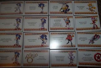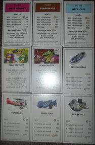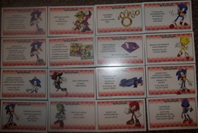 Here are the cards for Chance/Community chest or Badnick/Item Box. They each have CG character or item art & a Sonic related event. This includes "rescue Amy, get ___" or "collect all red stars do ___" or bad actions like "Kidnapped by Metal Sonic go to jail