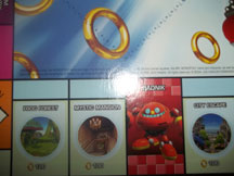 The game board itself is nice. It's big, brightly colored, & uses some nice CG art of Sonic Tails & Knuckles. The bright tiles make it look tempting to play. The box back tells about the Sonic theme & shows pictures of some of the items. The dice, workshops /bases are ordinary.