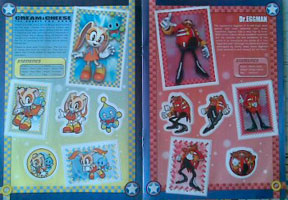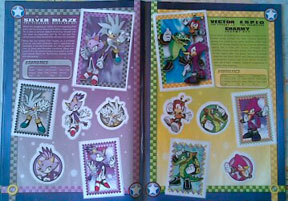 Do note that not everyone got new art. Chaos-0, the neutral/hero/dark chao and Tikal didn't get any changes, however their art was never common to begin with. Babylon Rogues fans will appriciate their whole page, and Eggman fans won't be dissapointed either. With characters like EMRL, Eggman Nega & E102-Gamma all starring on a sticker, this book has just about everyone covered. There's no shortage of Sonic either, as he stars & co-stars on several pages. This book is a super collectible for any Sonic fan, especially if you can complete it with the fun stickers.