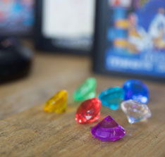 Yes, it is! These little chaos Emeralds are a free bonus prize when you order from Drop Dead! Every clothing item will secretly come with 1 of these different chaos emeralds as a surprise. Notice how much attention they were paying to the actual emeralds from the games! They got the colors right, with both blue AND the aqua. (This is a lot more than even lots of toy companies can say)