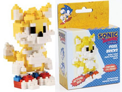 These are "Pixel Bricks". They're basically sort of a clone of those 1x1 Lego bricks, but packaged as their own thing. The bricks come loose in a bag inside this box. Using the instruction sheet inside (announced on box) you can build these sort of abstract...ish...like figures for Sonic & Tails.