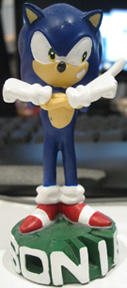 Above, you can see it in MIP. The box has Mario on it, & it was apparently part of a vending machine style blind box set that also had characters like RayMan & Mario as well as Sonic. When you open it, you see the paper card with figure plastic wrapped to it. Notice that the figure itself has unusually small feet, and the bottom half of his eyes are yellow. It was likely later chosen to be a pack in/bonus item for a platinum selling game. The pink oval in the middle just announces that the title is a Platinum one, which means it sold a certain number of copies. It is labeled Métropole Collections/M6 Interactions’ ‘Designed by Neamedia’ & made in France. Photo discovered by: NintendoFanGuy, MIB & loose photo & info added by
