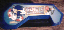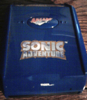 Here's an interesting LCD game that's based on Sonic Adventure 1. This is rather odd because by the time SA 1 came out, LCDs were mostly becoming even more obsolete then they already were. However, this one IS pretty sophisticated, with joystick, cheat codes, boss rush mode, save codes, and a level based upon each level from the actual SA game. Learn all about it & watch this rare game in action at SA Arcade LCD Youtube! It's 28 minutes of educational footage for you. & many buttons. It's made to resemble an arcade cabinet, but it folds over (shown) for easy carrying. It's decorated with SA1 stock art and logos on all sides. (The red writing on the back says "arcade". This could be found at Wal Mart near the release of Sonic Adventure 1, and was made by Tiger Electronics. ALSO SOLD in the UK area.