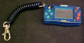 This is a rather shifty looking keychain LCD game by Tiger. It's meant to be clipped on and carried with you for fun via the blue plastic cord. This one looks like it's set in Eggmans base, and I'm not really sure what it does. It was really difficult to play and the battery has run out. It was difficult to use because it was always hard to tell what was going on, and what you were supposed to do.