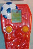 Gamers are faced with a soccer challenge from Eggman, in which they help Knuckles dive back and forth and block goals." This looks like Soccer with Knuckles. But why is the guy who punches on the game about kicking? Because he's the goalie. "You have to move left and right with the buttons to prevent the constantly-falling balls from getting in the goal, similar to the Sonic Racing game. There are even some balls that move diagonally. A non-sprite image of Eggman is also visible at the top of the screen " Again, the relief is not put to best use as it's hard to tell what's going on. Play info by MetalMandible