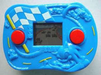 Gamers are challenged to move Sonic The Hedgehog back and forth around the racetrack without running into anything." Here is a racing game of some sort. Too bad the case is so dark blue, you can't tell what the reliefs are.