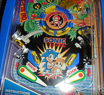 The uncommon pinball machine! This is a plastic pinball game that's not so small. It was made by Tomy in 1992, likely right after the release of Sonic 2. (note Tails on the art) It used 6 of the big D batteries and made a real racket but did not light up. This thing was created before Sonic Spinball, but it looks like it's on a similar path.