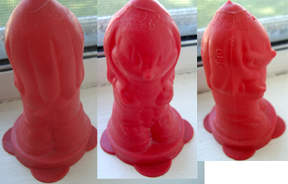 What is this curious item? It is the 'wrapper' to a figural lolly pop. However, it is more of a shell or a mold. The candy was poured into this, but instead of re-using it, it was sold as a novelty 'wrapper' which you could keep as a toy once you extracted the hard candy (and presumably ate it) As you can see, it's a sort of 'chibi' style Knuckles & Sonic, which is fully 3D. This was found in California in the mid 1990s. These are an interest & fun idea for candy! Uncommon.