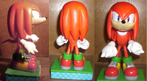 Next, Funko made Wacky Wobbler bobble head Knuckles. He too is modern style, (according to the box art) though it's hard to tell on the figures' eyes. He is just standing in a 'ready' pose without any gestureing. This figure looks fairly on-model as well, with nice 3D details for the shoes and no exaggerated head size. Should be able to order from FuntasticStore.