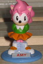 Old-Style Amy keychain. It looks like she snaps onto that blue base, and also comes with a card of some kind. But what is that gray thing above her head? The base looks like it has a name plaque, much like the later Sonic Adventure selection seen below.