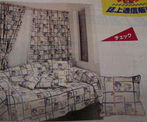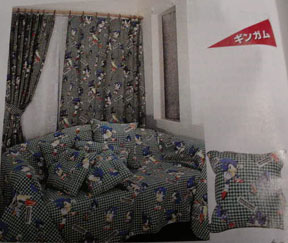 Curtain or Drapes with Sofa Cover & Throw Pillows sets. Look at all this great Sonic cloth! So many styles to chose from, you can surely find one that suits your Sonic Room. They all cost around 5-7000 yen, it seems. All the art is good quality as well, with shaded and detailed uncommon Stock Arts.