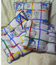 These rare, exclusive and wonderful cushions match the covers! With these pillows, you can create a truly Sonic Sofa! If you haven't heard of these before, it isn't much a wonder because they are very rare. As you see here, the pattern is exactly the same as that of the covering cloths for both sets. (This stands to reason that there is a 3rd cushion set to match the final covering)