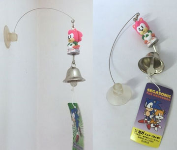 The Sonic one is different from the others because his bell is next to him, rather than at the feet. Did it break off? Tails is looking a little poorly with very tall eyes that are also a little bit cross-eyed. Amy's paint isn't the best, but the did get all of her detail including the shoe laces. This funny mini style where they don't really have legs wasn't used at all in later items and isn't super common on vintage things like this. This is a cute selection of little bells. (But, was there an Eggman one?)