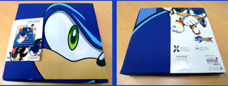 If you found this sheet-set on the shelf, this is what it would look like. They're folded so that the front gets Sonic's eye from the pillowcase, and it seems to come wrapped in a card with the license info on the back, and photo of the set on the front.