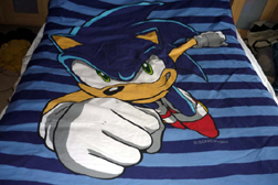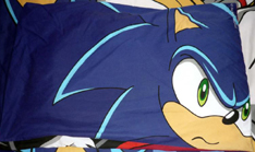 The set's theme is that it's reversible, with Sonic on one side and Shadow on the other. The blanket is reversible...and so is the pillow case! Choose your favorite, or flip it over for variety if you have a single-bed.