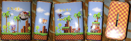 In the gallary is the actual money box, since the one above is just a proto-graphic. It is printed on all sides with wrap-around GHZ imagry. You can see foot tappin' Sonic & Eggman, Tails on an edge, a Buzz Bomber & Crabmeat & a Motobug on the other edge. The top is all 'ground checkered'.