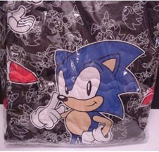 The earlier shots are of the blanket still in the bag, from the SonicGear personal collection. These two shots are what you get when you take it out. It is reversable, as seen here...and also extremely busy. There's practically a Sonic on every square inch and no room to rest the eye.