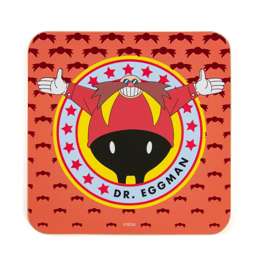 2 coasters from the european SegaShop. It's the usual rounded-corners-square shape. It has forward-facing classic Sonic in a ring with stars in it and his name. The background is light blue, but the 'dots' are actually silouette Sonic faces that get progressivly smaller as they go downward on the shape. This gives them a 'screen-tone-dots' type of feel. You can see the Sega copyright there at the bottom.