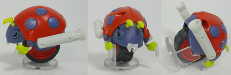 Here is the turn-around for the moto bug badnik figure. It's technically on the small line figures, but you could probably use this to play with the 5 inch figures too because most badniks weren't totally huge in the games. What's neat here is that it secretly comes with a transparent plastic base.