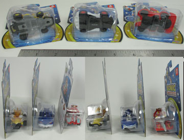 Their uppers are all plastic, and of course, so is the tiny figure in the drivers' seat. The cars are ok mini-likenesses of themselves, and the mini-figures are decent as well. With the back views you can see Tails' tails are well done, Sonic's head is shaped right & Eggman is fine/normal. They did a good job with the faces, (unlike some nkok) so if you de-box for play or display they'll do just fine.