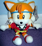In the gallary you can get a closer look at the Tails from the set. He looks ok, if a bit odd with a headband across his eyes, and the little suit. A tad of over-kill on his facial edges becomes evident, but the double-shine-spots in his eyes keep him cute looking. The early clothed plushes helped capitalize on more plush sales, though they only had 2 main characters to work with, 3 if you count the rather scarce Eggman.