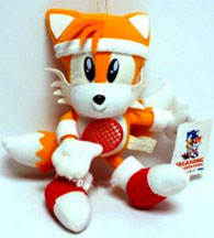 A selection of Sports related plushes. Basketball Eggman, Soccer Sonic, Tennis Tails, Hockey Sonic and...what is that last Tails doing? What requires a hat like that? Is he fishing? Golf? It is difficult to tell.