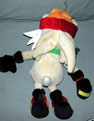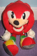 Here's a close up of the Sonic the Fighters Knuckles doll. As with all the STF plushes, this one is pretty well done. His nose is a bit big, making him look somewhat 'friendly', but his details are all well done. He has felt knuckle-spikes, and his spikes are curved inward, not just pointing anywhere like on other plushes. However, there are no bolts on the tops of his shoes.