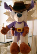 Here is Bark from the Sonic the Fighters collection in 1996. With these photos you can really see the detail, unlike the group shot. He's got the markings on his gloves, and is detailed with his hat and fringe scarf, just like in the game. Note also the fuzzy fur chest patch and felt 'hair' accents. He even has the 'long hair' in back--but it looks more like tentacles or something. Still, this is a good rare plush.