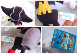 In the gallary is a better look at the detail of the Bokkun from the original Japanese Sonic X plush set. For such not that big dolls, he has a good amount of sewn on detail, like the grayish ridge of color on his head, felt M for his belt (Speculated to be for "Messenger" but nobody ever confirmed it) and then even the inside of his rocket backpack has texture/threads & stuck on 'fins' for the sides of the outside. The whole X set seemed like a really quality production, and this detail shot is further proof.