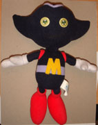 You can't see it, but Bokkun here is actually smiling. It is a large smile-mouth, but it's embroidered on with black thread! You probably have to own this to see it, as it won't really photograph. He has his rocket belt and the head-fin things are actually 3D as well. The eyes are quality embroidery, and it's a good accurate representation to collect.