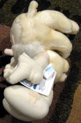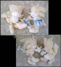 The two in the background are simply made using only lighter-than-normal colored fabric. They appear slightly 'washed out' but the quality shows they're not simply bleached. The two in the front are some bizzarre albino version of their normal selves. These are MUCH rare-er. They even have these vaguely-colored white plastic eyes. They're actually somewhat creepy if you get close. This is a photo of their actual hang-tag .