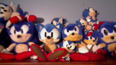 This is another very early plush. Soon after they made the first 'stringy Sonic' they produced another very similar one, and this is it. He's still got strings/cords for his arms and legs, and the eyes are a felt patch, along with his spikes. However, the shoes are less bead-like.