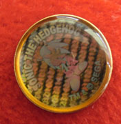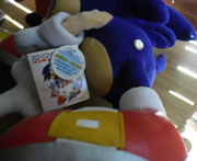 These are large plushes (thats an AA battery by the foot) with a great & fun property: you can pose them. They have a pose-able frame inside, so they can stand and keep poses too. These are sometimes called 'big-foot' dolls because of their large feet. They were abundant on ebay around the time of Sonic Adventure 1. The tag appears to be in Chinese though...but it has all the copyrights. Each one also has a button on the side (see top right) which is acrylic with a hologram copyright inside (detail at left). Holograms are rather expensive, so it's unlikely a bootlegger would go to the trouble to replicate it.