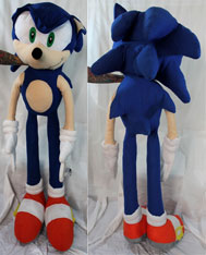 You've seen various Kelly Toy plushes around these pages before, but you havn't seen the 54 inch one! This one is super big, but it is not their largest, which is a 72 inch. (Sonic, Tails, Amy, Knuckles & Shadow seem to have been made at each size level) As with most of their dolls, he looks ok, if slightly/somewhat under-stuffed. The feet & hands are appropriately big/don't seem shrivelled like on some dolls. His ears are a tad low on the head, and for some reason the brow ridge is a cloth 'flap' type thing with this one. The eyes are properly placed, and so is the mouth though, so the expression remains decent. This was a win-able item at Six Flags theme parks in the USA.