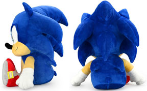 The plush seems to be caught somewhere between 'stylized' and 'attempt at accurate' which leaves it in an odd spot. The face/head is very nicely done, but then the hands only have 3 fingers (which is ALWAYS WRONG) he either gets 5 or the hand is stylized into a ball or mitten. There's even something in the copyright somewhere for him that 'if he has fingers he needs 5, never 4'. Hopefully that gets fixed. Then, the 'big body' issue makes it look not-as-great when standing up because of the hinged legs (that make it sit better) With all the effort they did for it (hands look good, good spikes, great shoes, nice fabric, good embroidery etc) it seems a bit of a shame that they went with 'fat body stylization'.