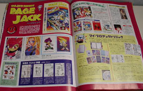 "Page Jack": a sort of fan-area for people to write in to. As you can see, there's Sonic the Hedgehog, Espio and NiGHTS fan art, along with little Sonic tidbit images and possibly info or letters.