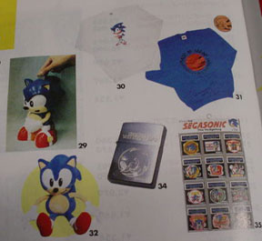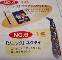 There are photos of some of the cool items available at the time. The magazine seemed to be here to inform the fans of what great stuff they could get. (What an idea! Why can't USA Sega do this?) It probably even says where to get it. Notepad, bank, shirts, patches, a tie, pencils, keychains and a mysterious disk top off the selection.
