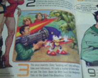 MAD Magazine also had a Sonic (mildly) feature. Though not as large as Cracked's, it's still enough to make the list. The cover shows "50 Worst things about video games" and has several famous characters. Sonic makes faces, Master Chief holds his helmet in dismay, Chun Li is worried about something, Splinter Cell guy is bored, Mario holds his nose, Crash Bandicoot looks like he ate something sour and Lara Croft appears to just be standing there. Inside the magazine, there's a type of 'countdown' article for the 50 things.