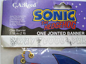 This is a jointed Sonic party banner. CA Reed Co. did this as well. Usually this type of banner is made from cardboard letters that spell out 'happy birthday'. The banner SHOULD say: "Way cool Party" and has Sally and Tails in between "Way" and "Party"