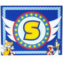Every party needs drinks, so these cool cups are perfect to serve in. As you can see, they fit the theme well with this "S" symbol in a ring of stars. The top and bottom have blue checkering. There is likely a Sonic portrait on the other side of each cup. You can buy these in sets. Each cup holds 9 ounces of drinks.