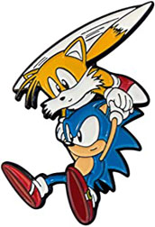 The second pin is Tails flying while carrying Sonic which seems like a bit of an uncommon but fun art to choose. The tails are less dynamic here, but there is a 'swirl area' to indicate motion. This team up type of pose was probably pretty hard to neo-classically come up with though because the classic characters had rather short limbs and to get them to hold hands beside Sonic's head is not an easy feat to capture with art and have it look normal/arms look normal length. However, it does work, and even the foreshortening on Sonic's leg looks decent in pin format. Both are good to add to a collection. These are likely to be at Amazon (Search Zen Monkey) but may appear elsewhere too. If you find them, they are likely to be about 9.99 each.