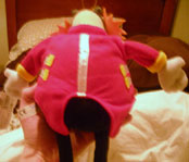 As you may or may not know, Play by Play toys is generally known for turning out mutant things. However, this Eggman plush has worked out rather well. Like the usually horrible Toy Network, this company has also managed to make a decent Eggman against all odds. With real 3D facial features, felt coat, and accents, he's not bad. Though his nose is a bit off-center, and one leg is slightly twisted.