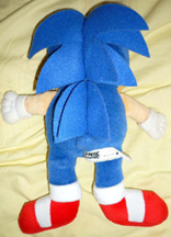 This plush looks like a lot of the other vintage Sonic dolls around, especially with the old-style felt spikes. However, this doll from 1997 has a voice box inside. When you squeeze him, you'll hear the "Sega Scream" BUT, it is the Japanese version. The accent on the yell gives it away that this isn't the one they re-did for all of the USA advertisments. He is about 12 inches high, and was made by Treasures. His hands are also unusually small and paw-like, which is a little off model, even for the times.
