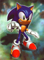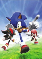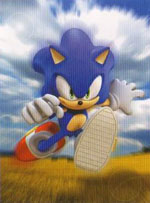 3 scrolls using CG art from one of the games. The first obviously lends its running/pointing Sonic to the last one. All use some speed-lines and blurring to give them a sense of action coming toward the viewer. Knuckles and Shadow seem a bit oddly dropped in on the first one, but any of them are a pretty decent decoration for a Sonic room.