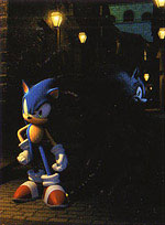 Want the Werehog on your walls? These wall scrolls are for you. The first one features the Sonic/Werehog blend that was used as the cover art for the game, however it has been cropped and somehow set up so it hangs sideways instead. (the bars do indeed seem to be at the top and bottom, on this one) The second is a scroll made from some of the first Unleashed art that appeared, and has Sonic in the foreground with the Werehog lurking in the back, likely in Spagonia somewhere. These are available in 2009/fall but who produced them?