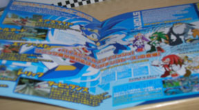 This is a Sonic Riders promotional leaflet. It's sort of like a mini-booklet given away to promote the game, likely in game shops before the game was on sale. You can see the Babylon Rogues, several screenshots and descriptions.
